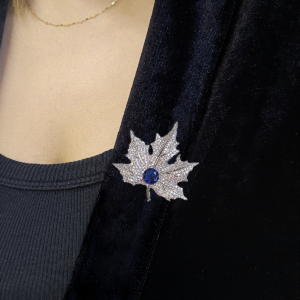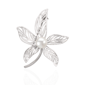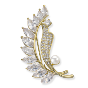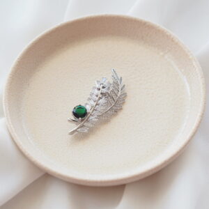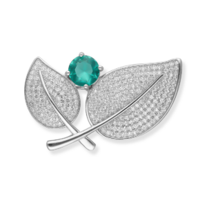Broszka-wisior srebrna Liść akacji z cyrkonią