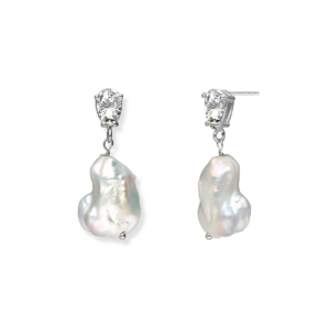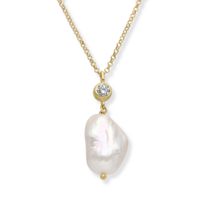 Naszyjnik srebrny z perłą naturalną i cyrkonią