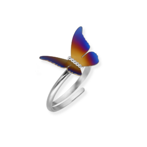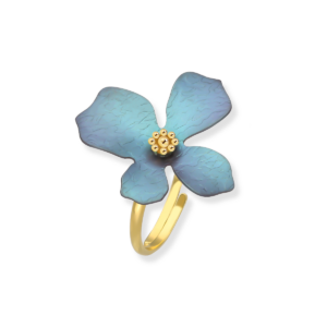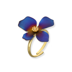 Pierścionek srebrny z tytanowym Kwiatem Niebieskim
