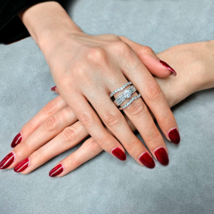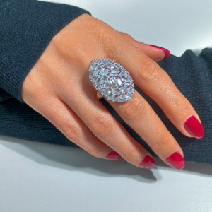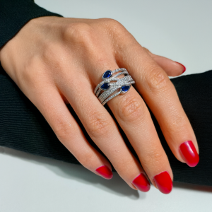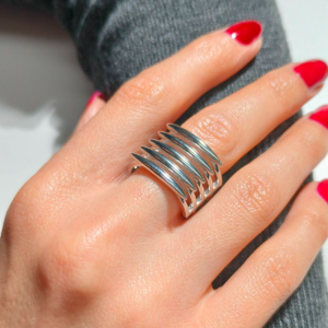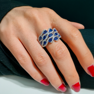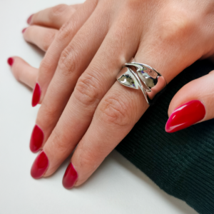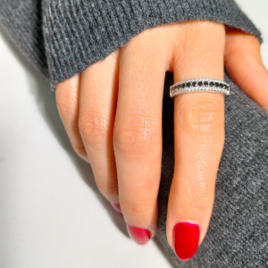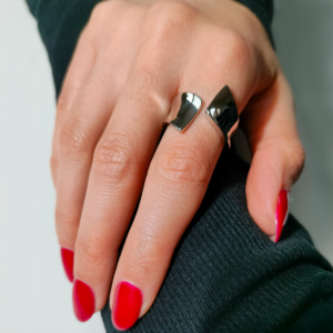 Pierścionek srebrny z tytanowym Kwiatem Jeans