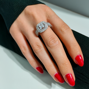 Pierścionek srebrny z tytanowym Kwiatem Szarym
