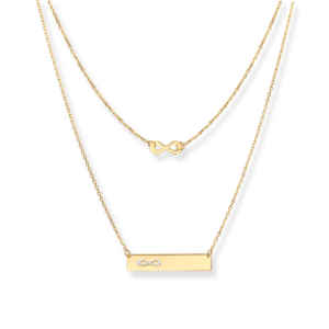 Naszyjnik srebrny podwójny z nieskończonością i blaszką