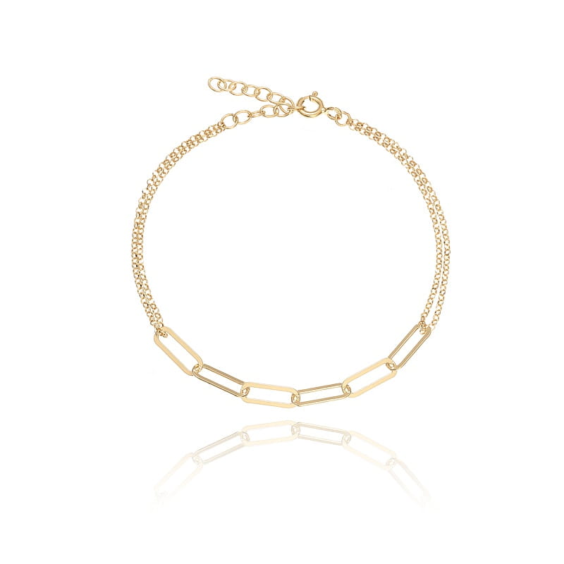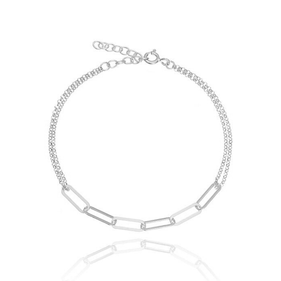 Bransoletka srebrna rodowana na podwójnym łańcuszku z efektownym elementem grubszego łańcuszka.