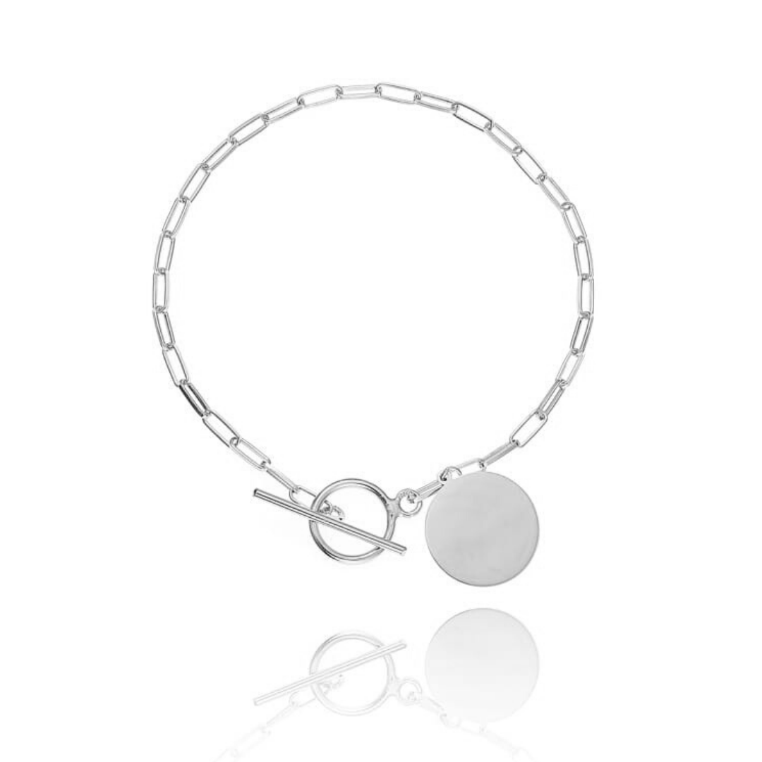 Bransoletka srebrna spinacze z blaszką i przetykiem