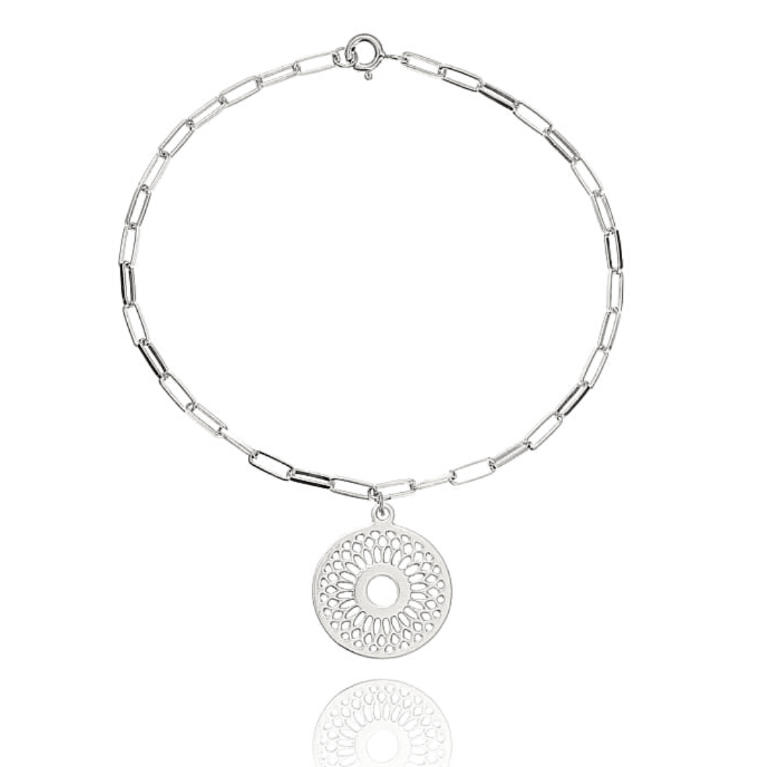 Bransoletka srebrna rodowana z ażurowo wym elementem to elegancki dodatek do każdej stylizacji.