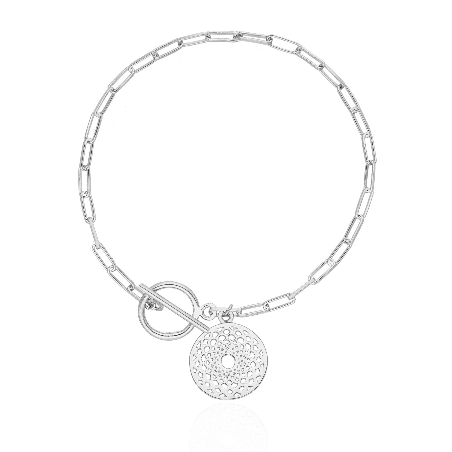 Bransoletka srebrna spinacze z Małym Ażurem i przetykiem