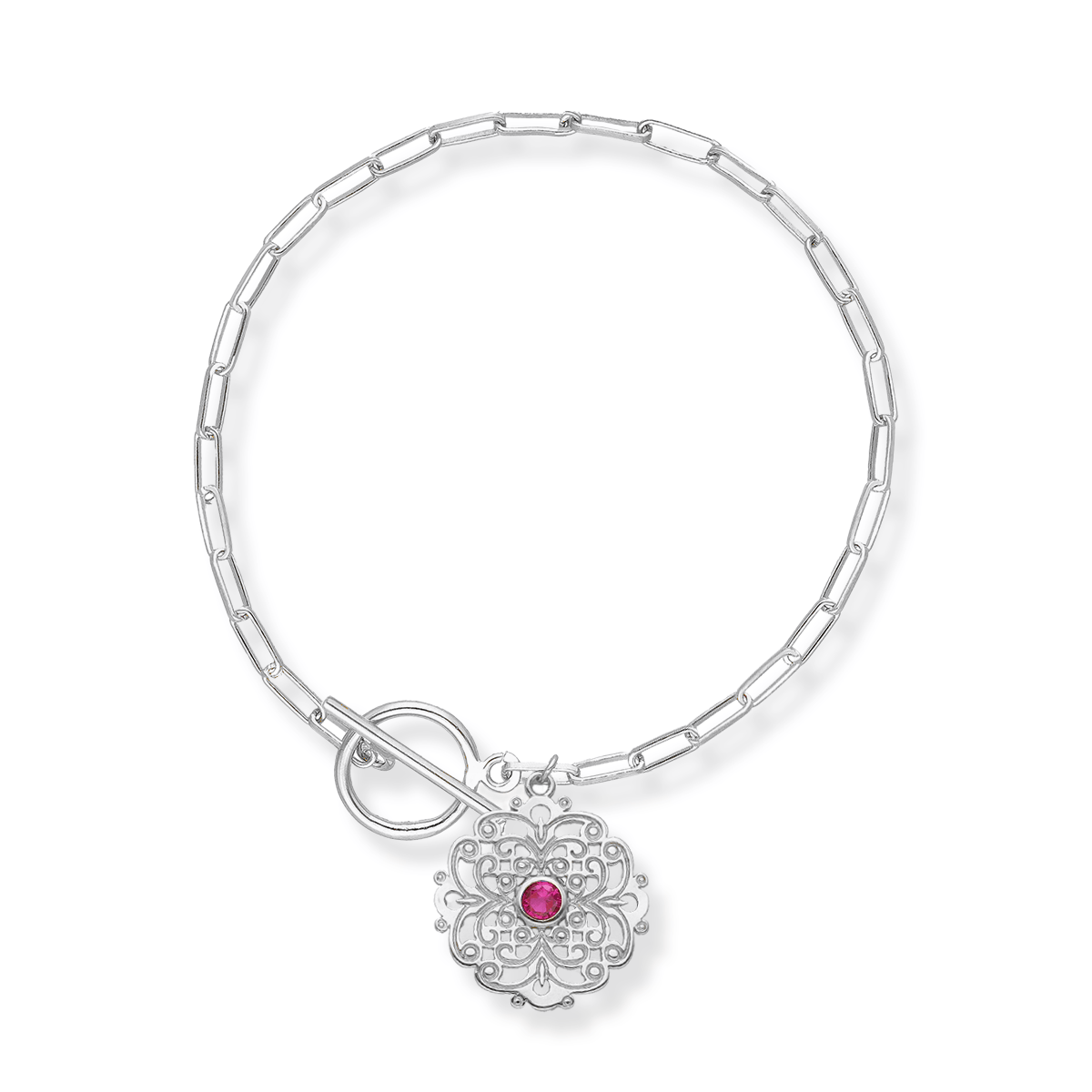 Bransoletka srebrna z ażurem i kamieniem