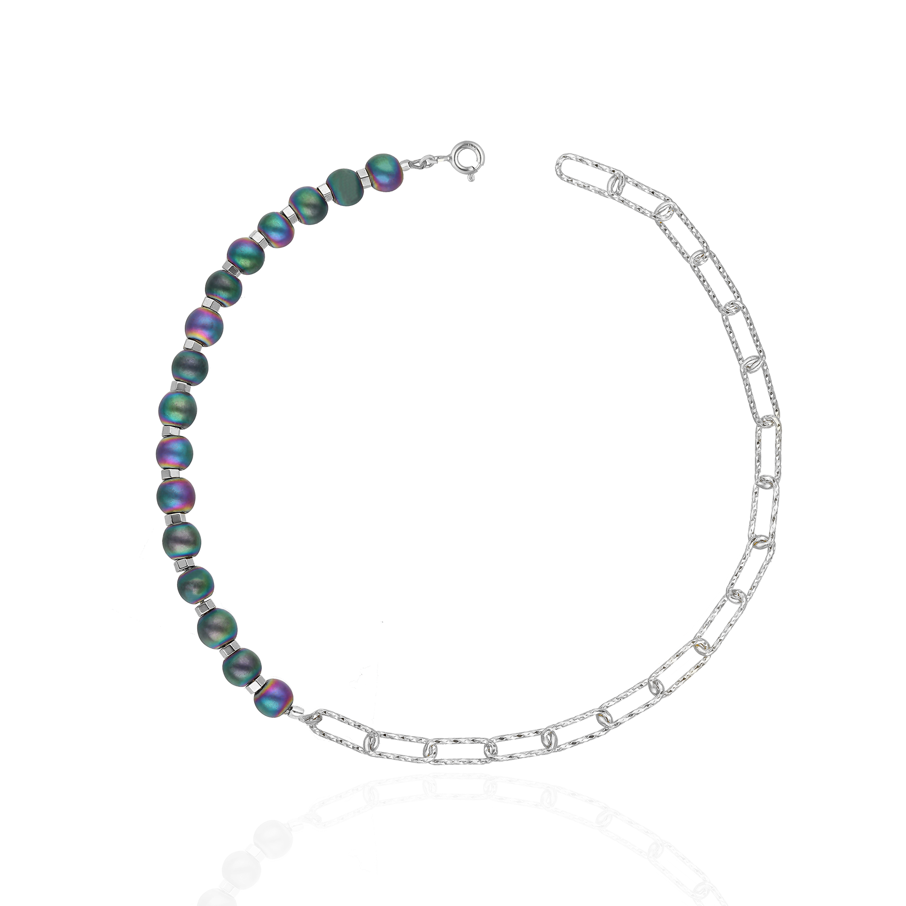 Ujmująca oryginalną stylistyką, zjawiskowa bransoletka wykonana z rodowanego srebra z dodatkiem naturalnych hematytów o niepowtarzalnej barwie to wspaniała propozycja dla wyjątkowych kobiet.