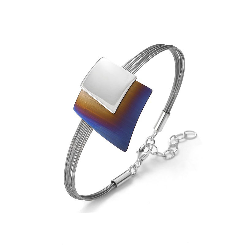 Bransoletka srebrna z linek stalowych z Tytanem Square