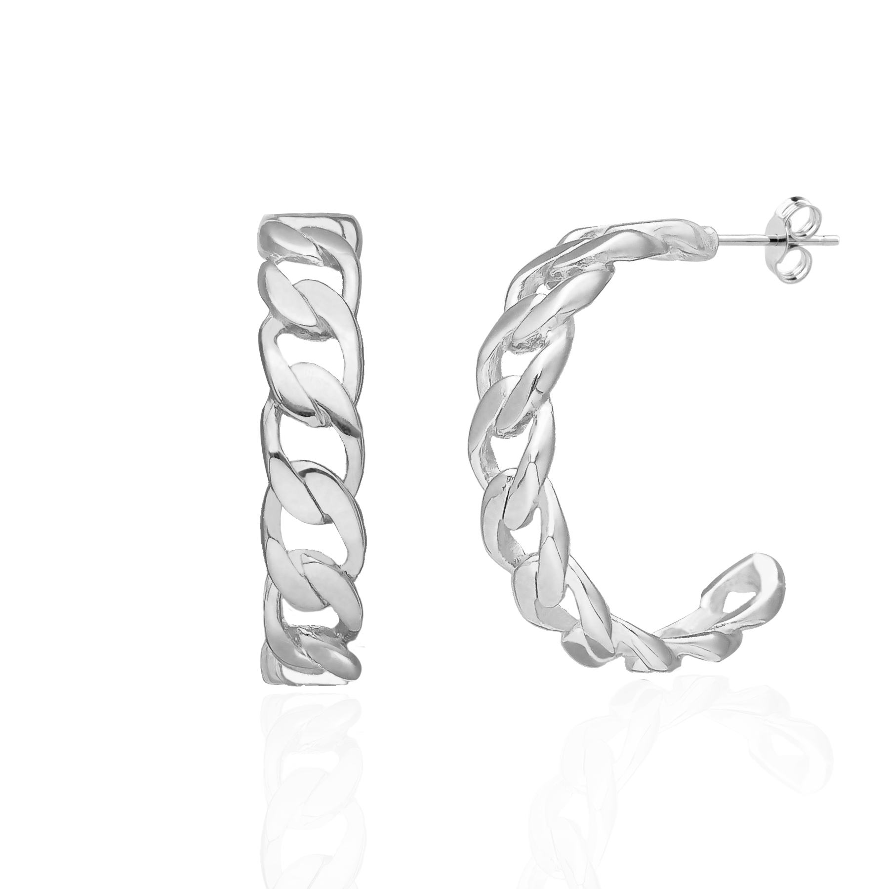 Kolczyki srebrne gruby łańcuch koła