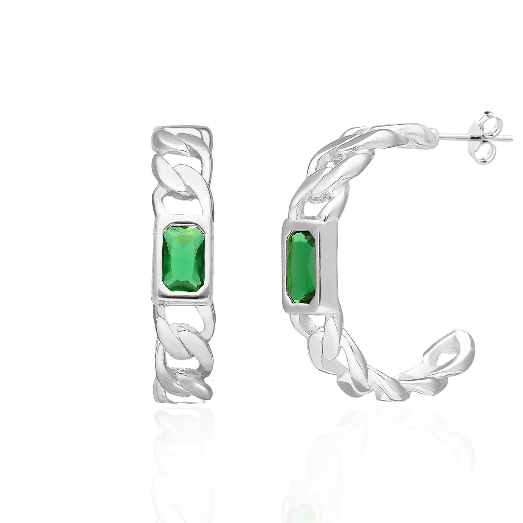 Kolczyki srebrne gruby łańcuch koła
