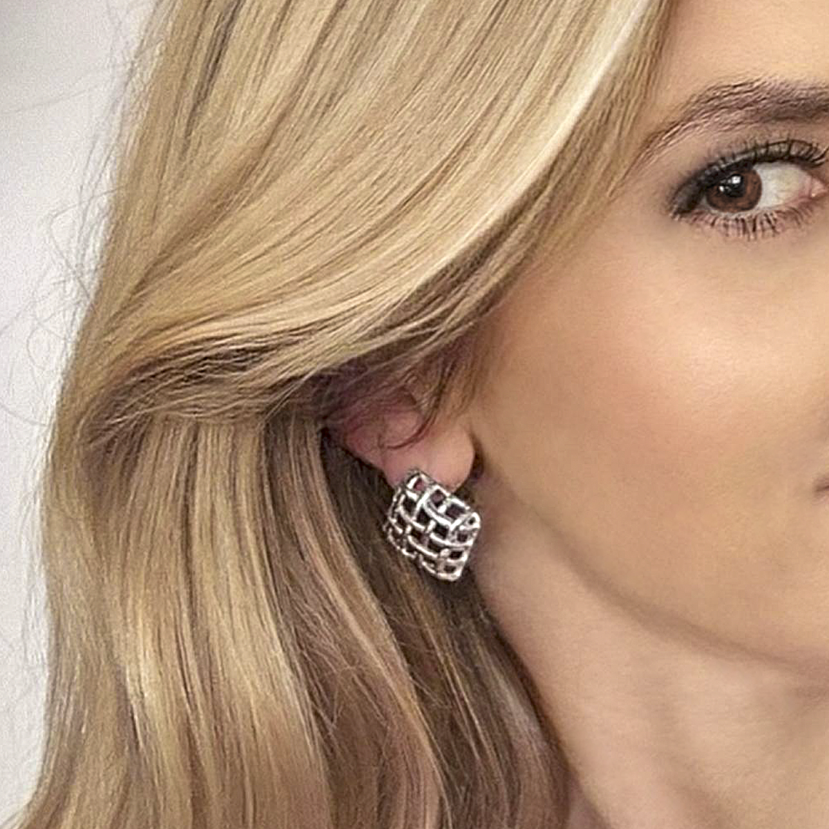 Kolczyki srebrne Kwadrat kratka