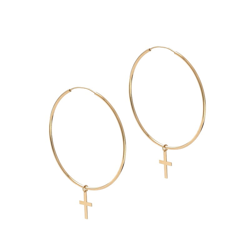 Kolczyki srebrne małe koła z krzyżykami
