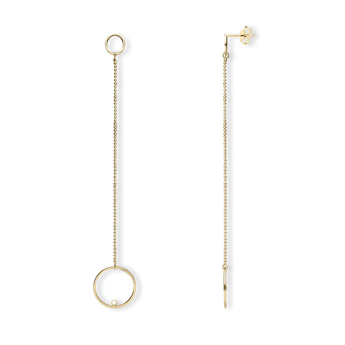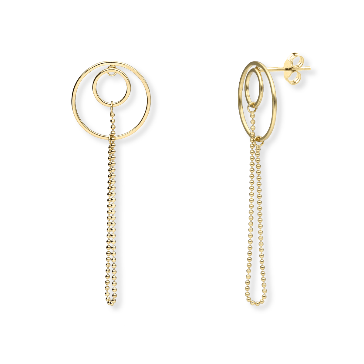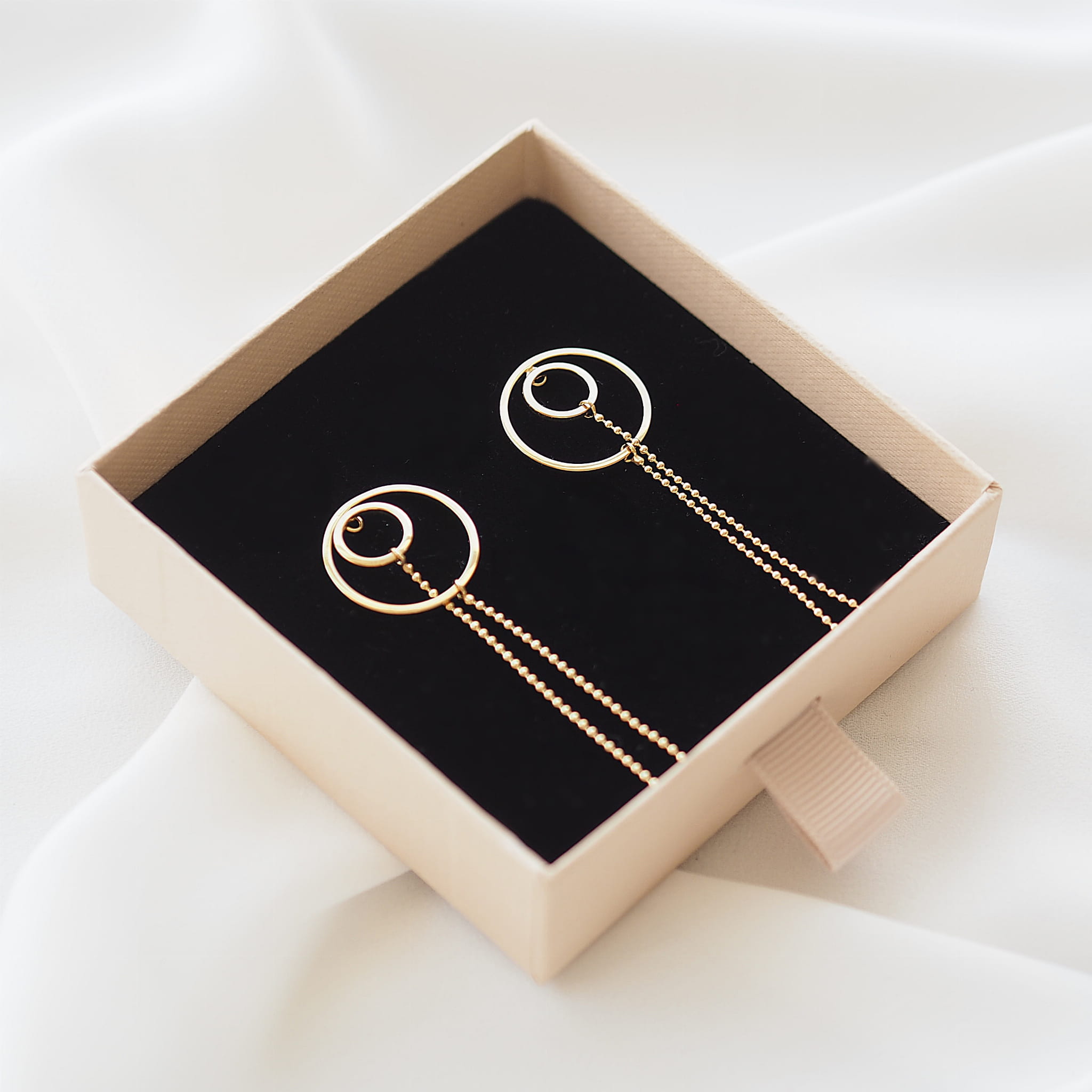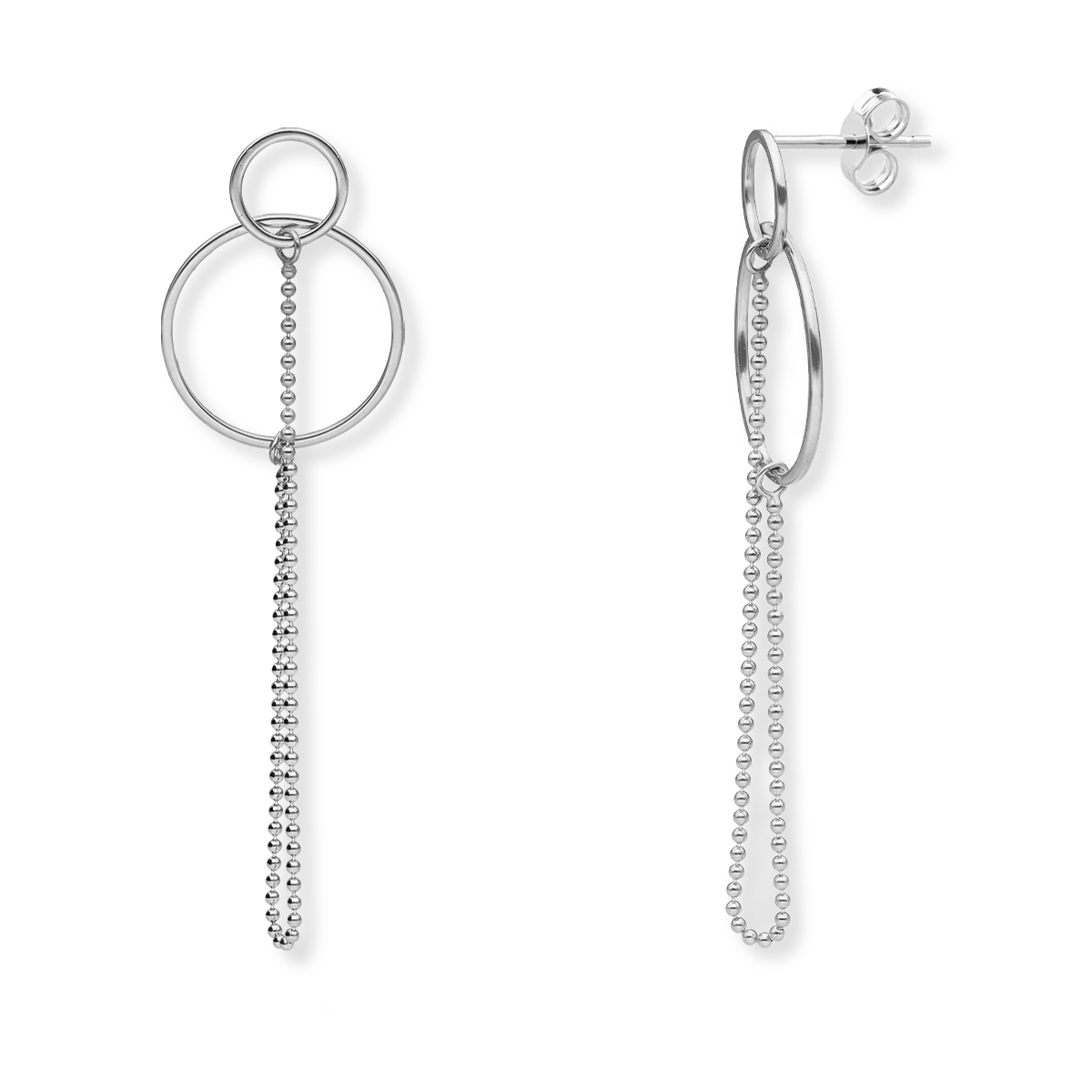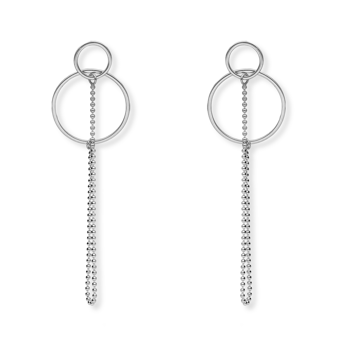 Kolczyki srebrne podwójne koła z łańcuszkiem