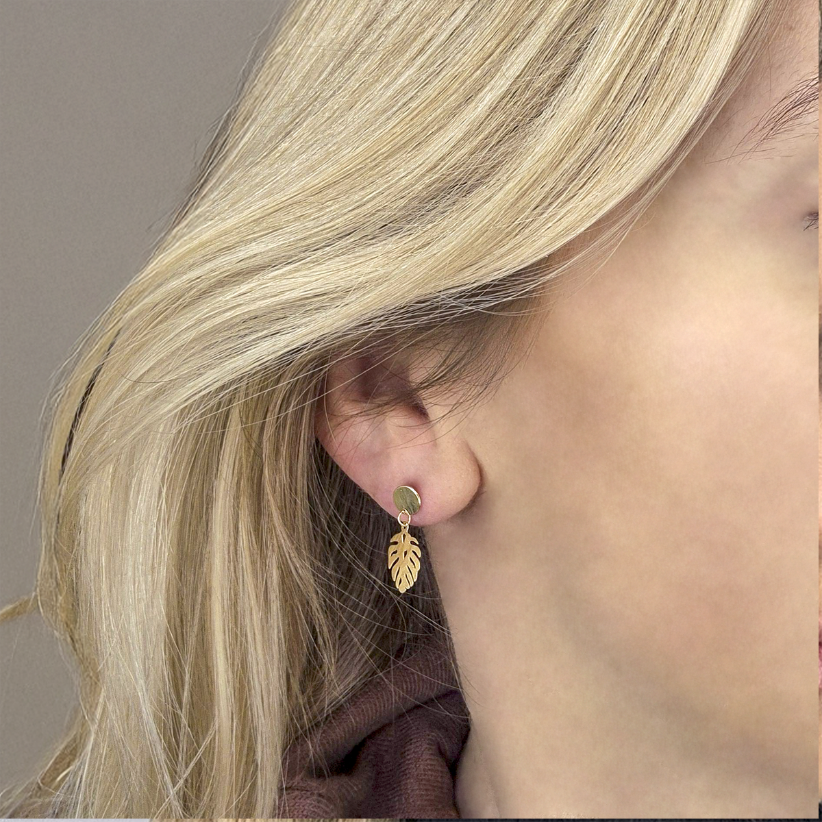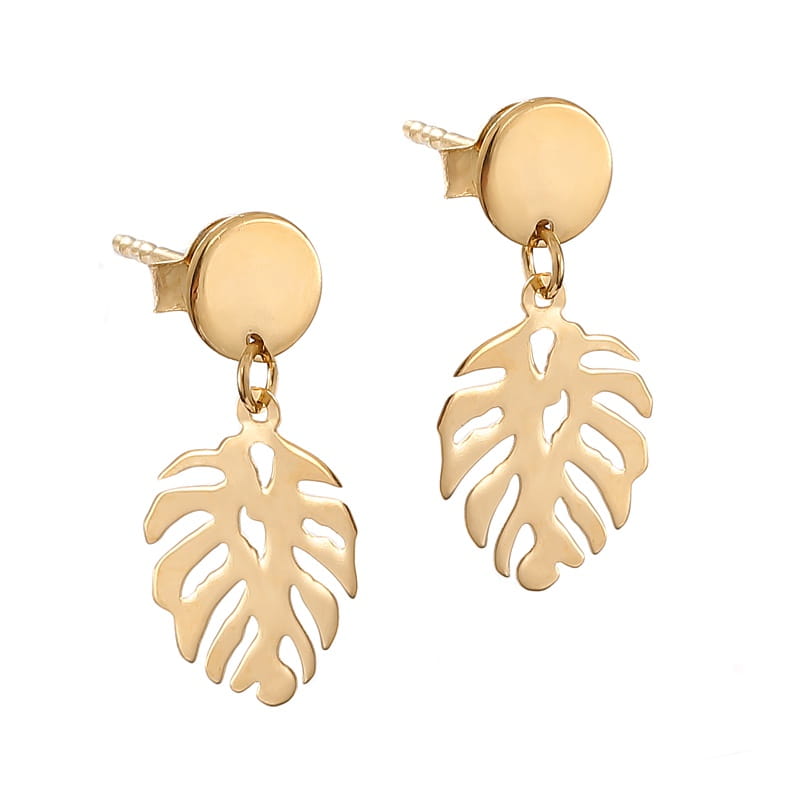 Kolczyki srebrne wiszące liść Monstery