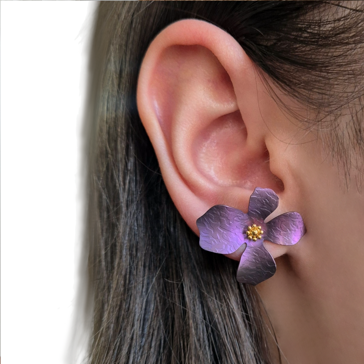 Kolczyki srebrne z tytanowym Kwiatem Różowym