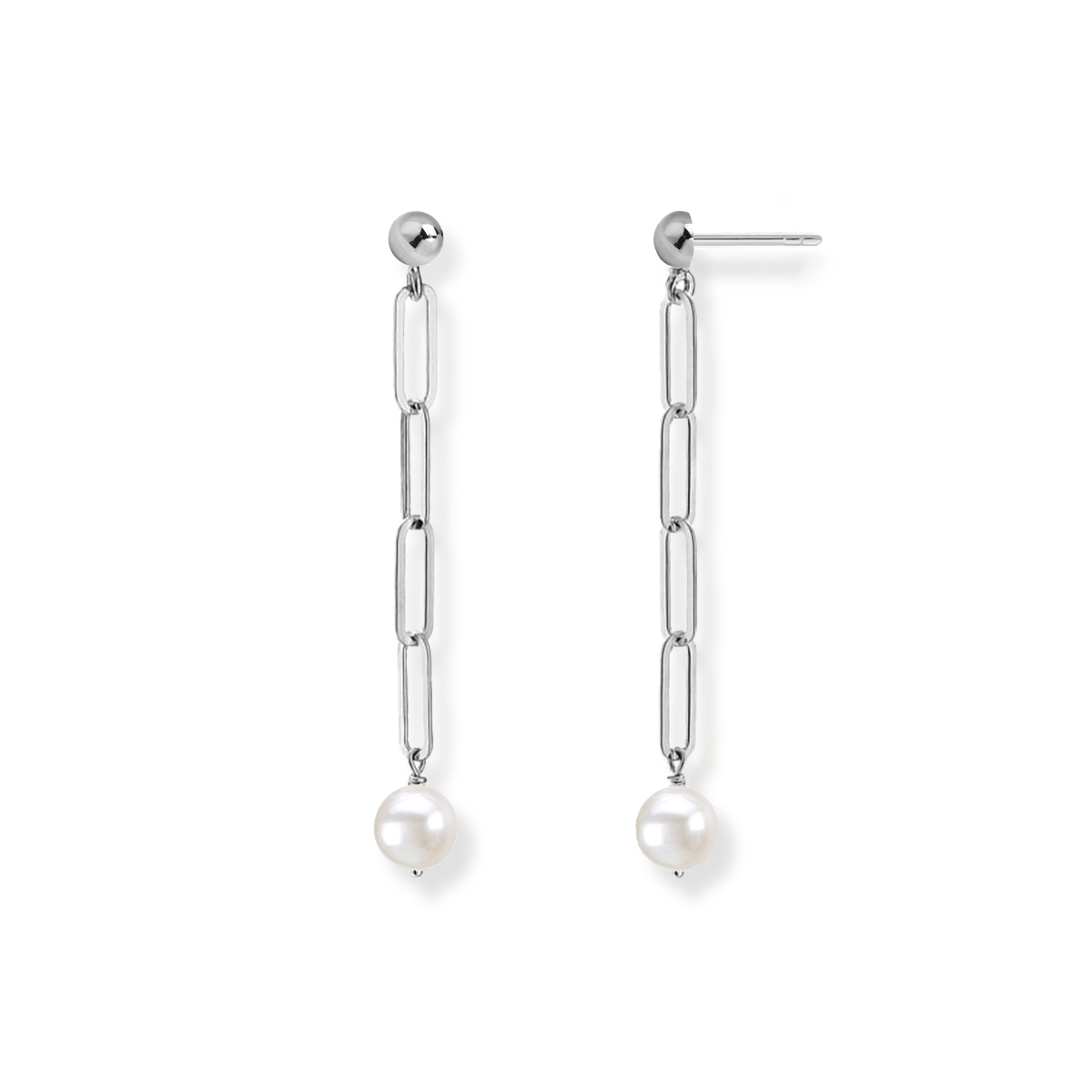 Kolczyki srebrne wiszące z perłą naturalną