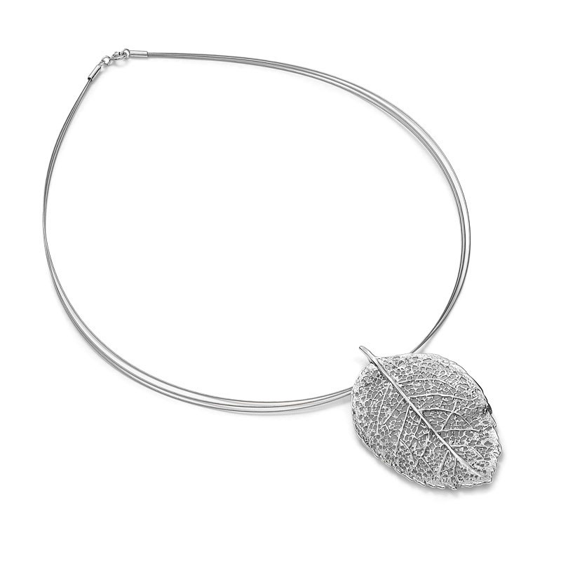 Kolia srebrna z ażurowym liściem