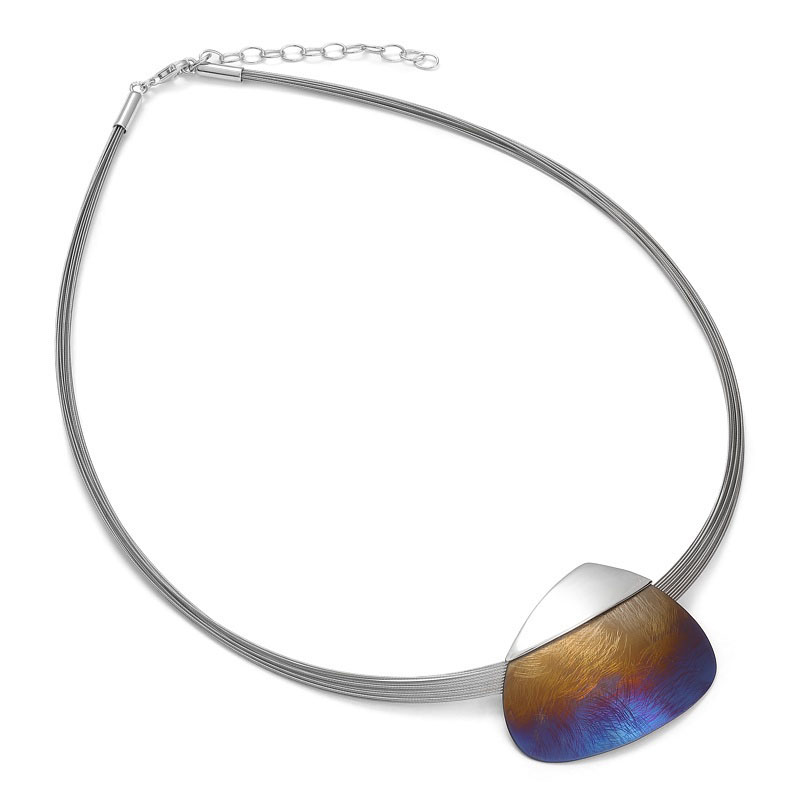 Kolia srebrna z linek stalowych z Tytanem Shine