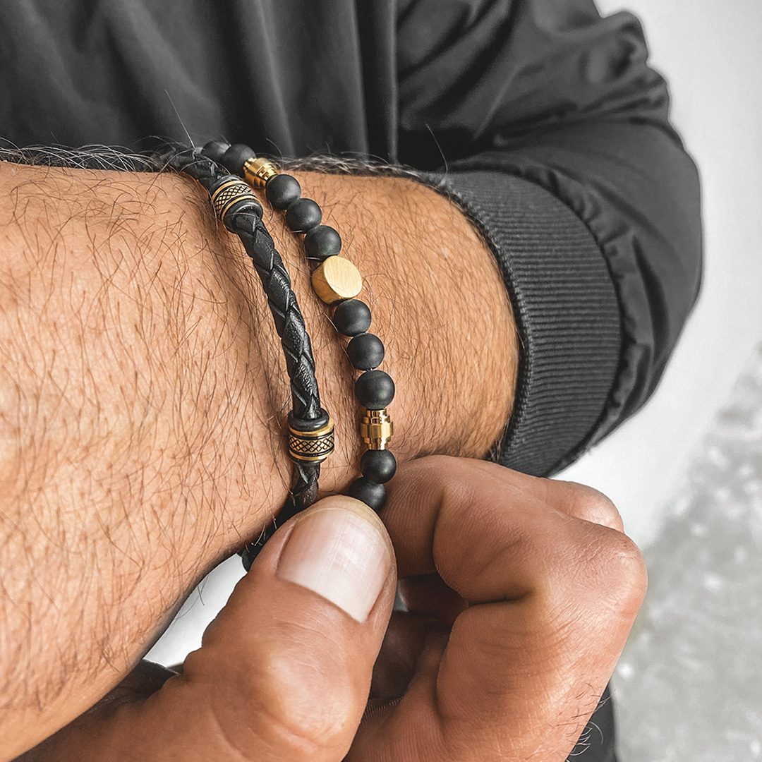 MANOKI Bransoletka męska z czarnymi koralikami z onyksu