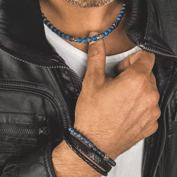 Materiał: stal szlachetna, rzemień naturalny