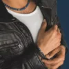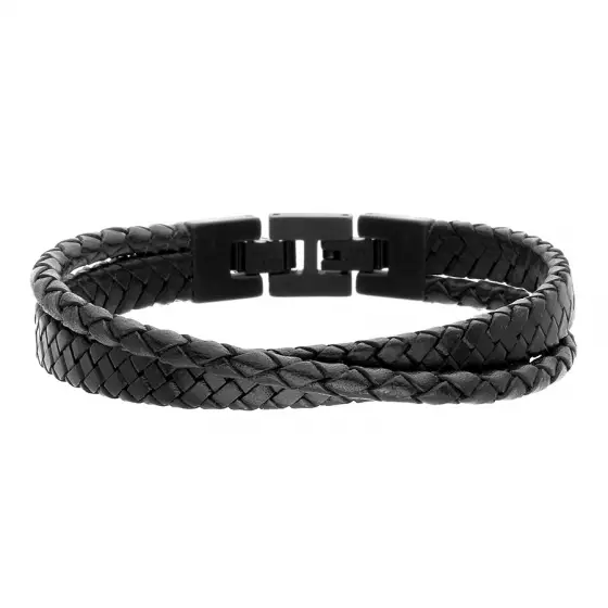 MANOKI Męska skórzana szeroka bransoletka czarne plecione rzemienie