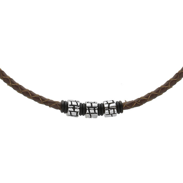 MANOKI Naszyjnik męski brązowy rzemień
