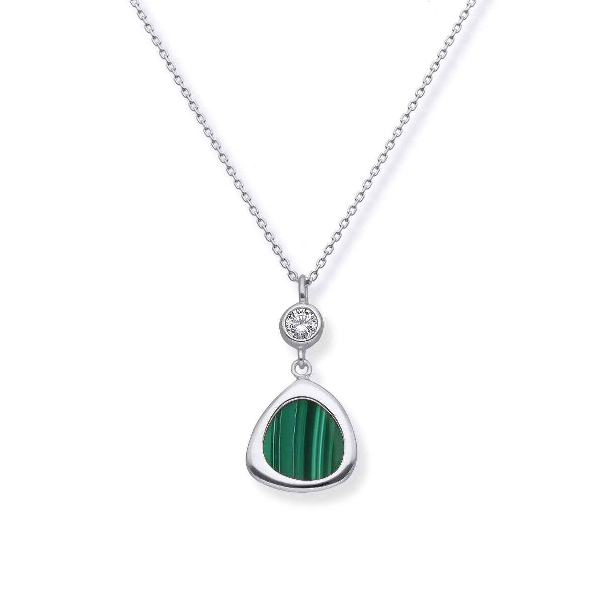 Naszyjnik srebrny malachit Lucy z cyrkonią