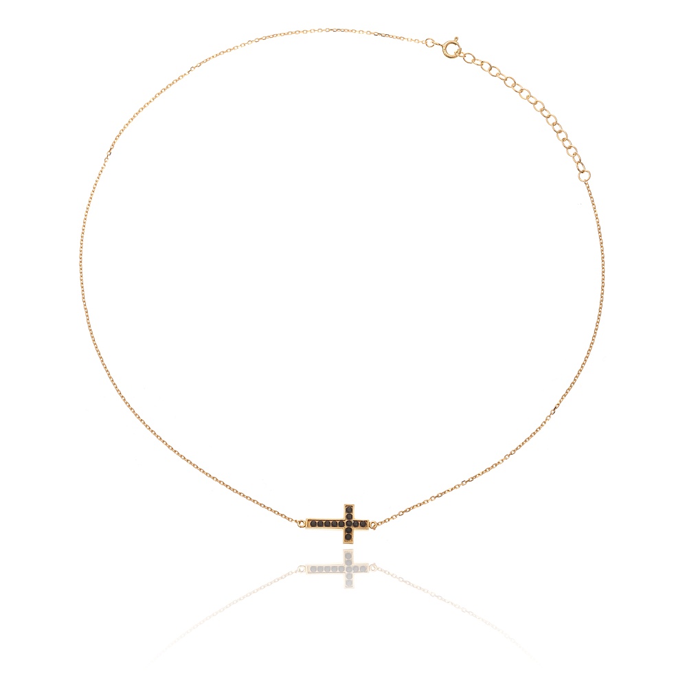 Naszyjnik srebrny pozłacany z krzyżykiem z czarnymi cyrkoniami