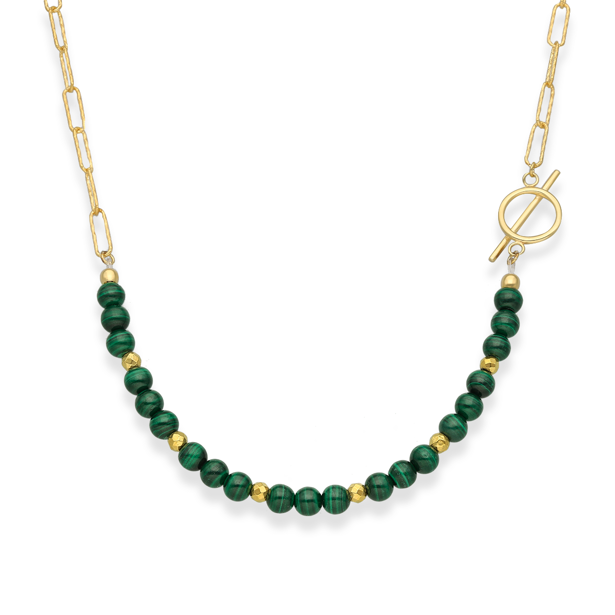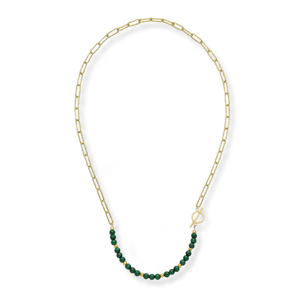 Naszyjnik srebrny spinacz diamentowy z malachitem
