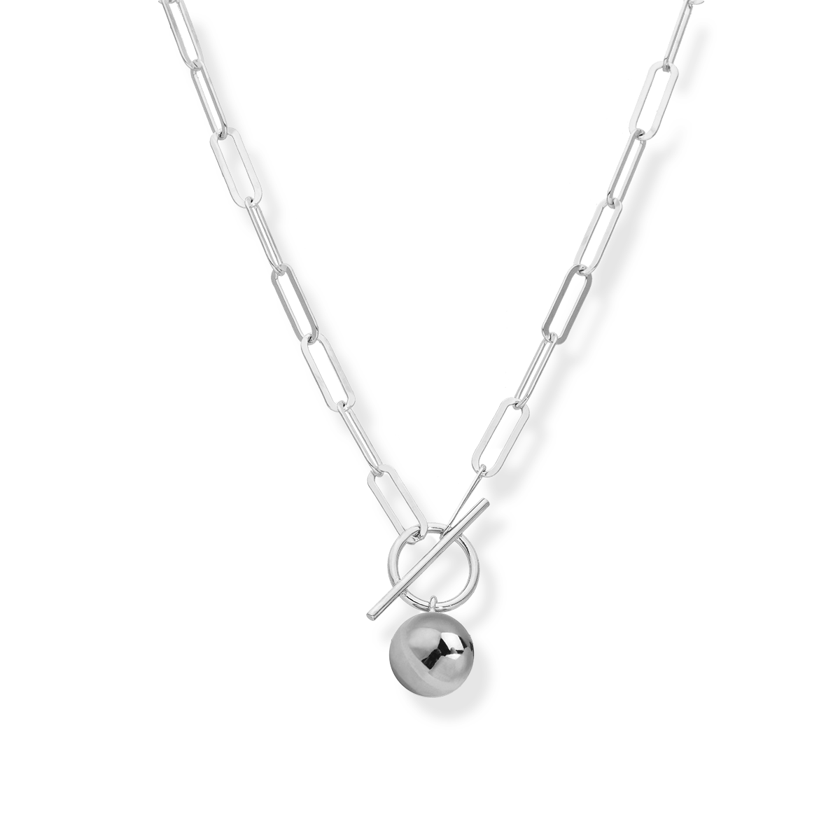 Wyjątkowy pod każdym względem nowoczesny srebrny naszyjnik z przetykiem i ozdobną Kulką to inspirująca propozycja dla przebojowych kobiet.
