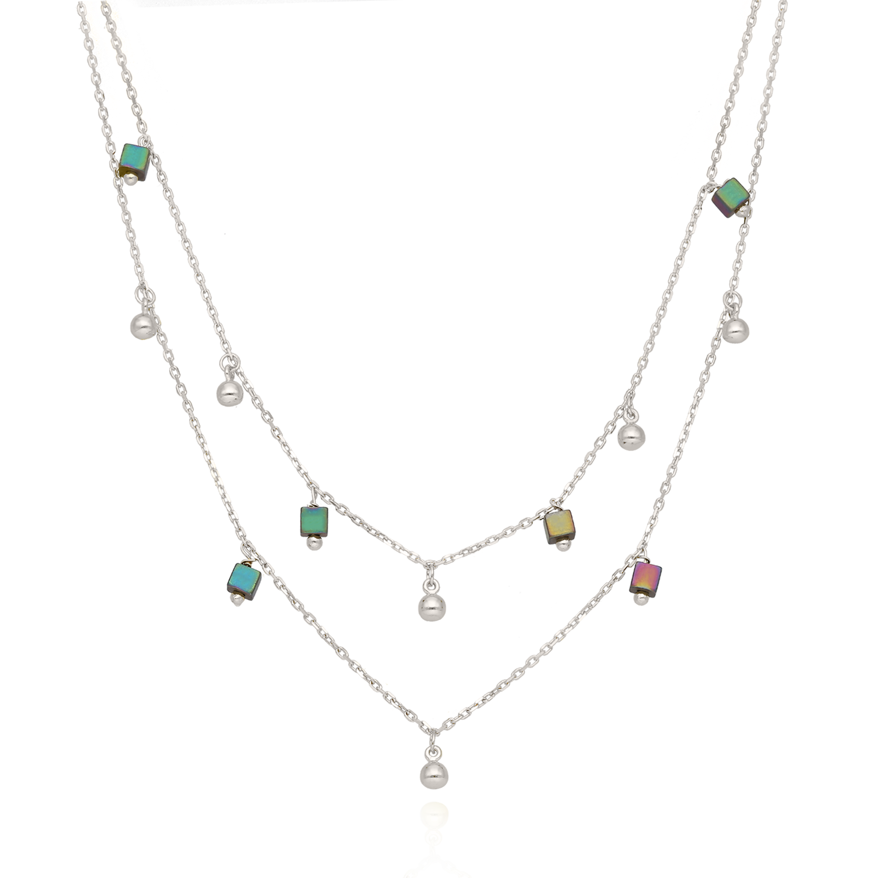 Naszyjnik srebrny z kulkami i Hematytami Double Layla