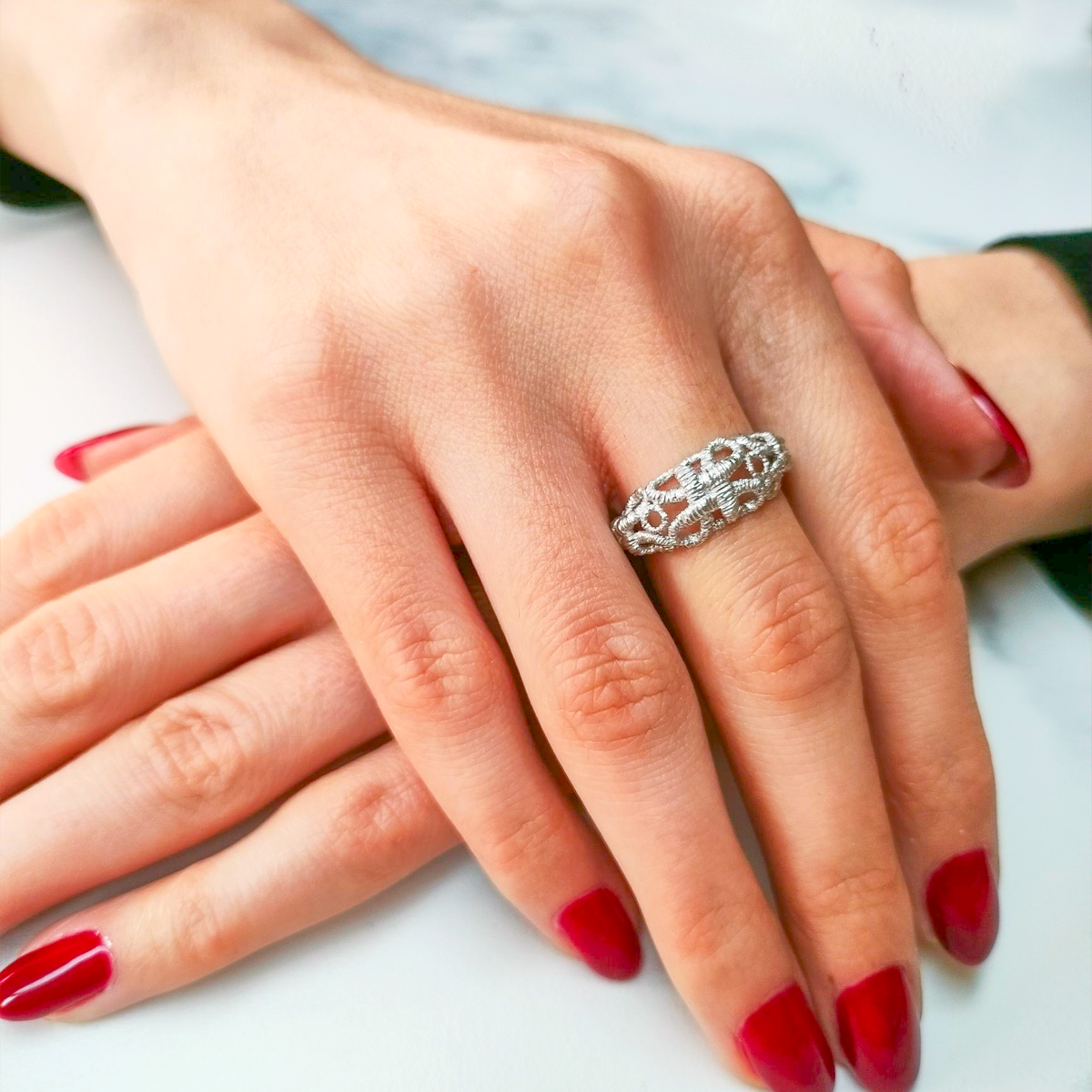 Pierścionek srebrny Lace All