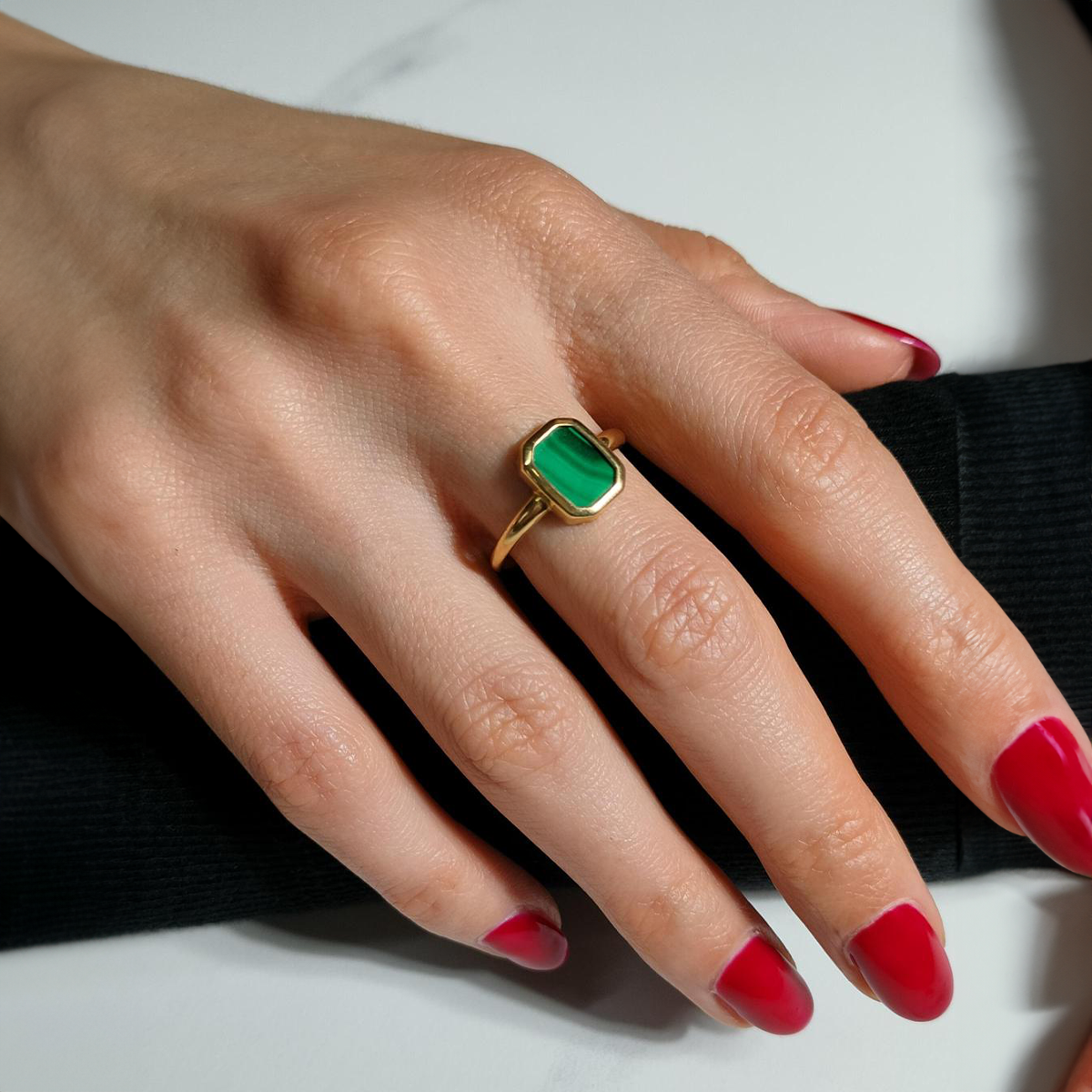 Pierścionek srebrny z malachitem